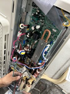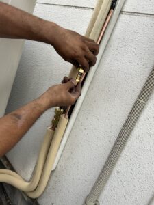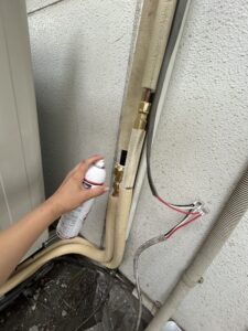 室外機の接続が完了したら、フレア接続部などのガス漏れチェックを行います。