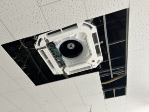 天井吊りタイプの業務用エアコンを指定位置に設置。